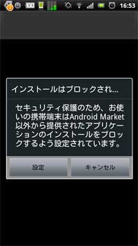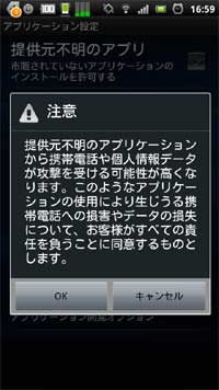 「設定」→「アプリケーション」、もしくは上記の「設定」から「アプリケーション設定」の「提供元不明のアプリ」にチェックを入れます。