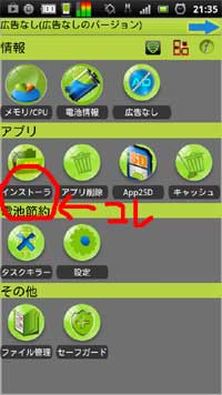 「アプリ」の中の「インストーラ」を選択すると自動的にインストール出来るアプリがあるか検索して、